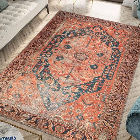 Eyely UES100M-8 Supersoft Haze Solid Low-Pile Indoor Area Rug Casual;Contemporary;Solid;Traditional, Bedroom, Kitchen, Living Room, Easy-Cleaning, Non-Shedding, 8 X 10, Orange