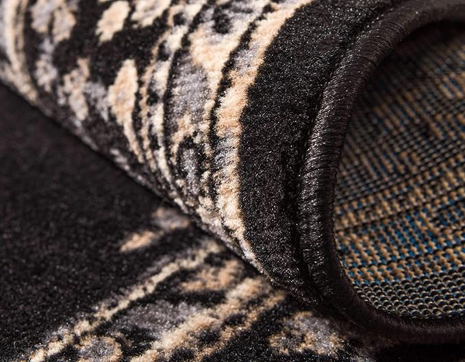 Unique Loom Reza Collection Traditional Persian Style Area Rug, 3 ft x 16 ft 5 in, Black/Beige