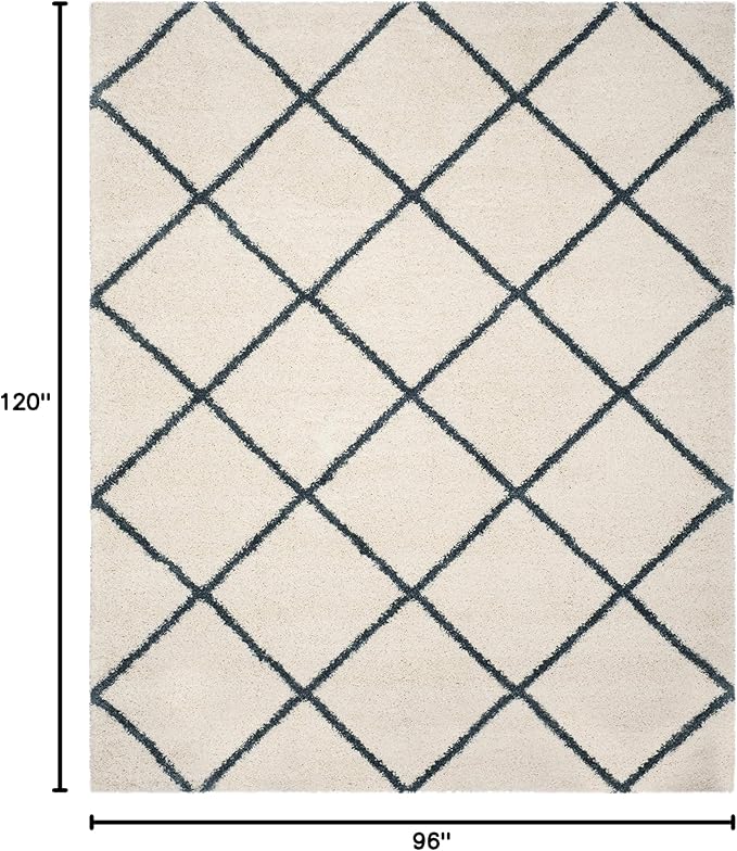 SAFAVIEH Area Rug 8x10 - Hudson Shag Collection - Large - Ivory & Slate Blue, Trellis Pattern, Non-Shedding & Easy Cleaning, Plush Thick Pile, Ideal for Living Room, Bedroom, Dining Space (SGH281T)