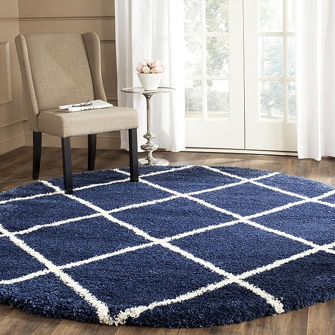 SAFAVIEH Hudson Shag Collection 9' Round Navy/Ivory SGH281C Modern Diamond Trellis Non-Shedding Living Room Bedroom Dining Room Entryway Plush 2-inch Thick Area Rug