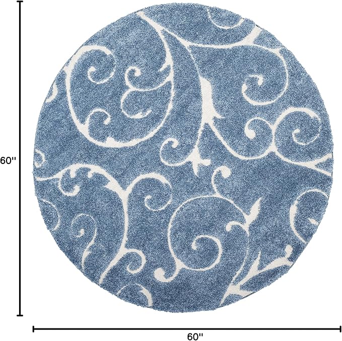 SAFAVIEH Florida Shag Collection 5' Round Light Blue/Cream SG455 Scrolling Vine Graceful Swirl Textured Non-Shedding Living Room Bedroom Dining Room Entryway Plush 1.2-inch Thick Area Rug
