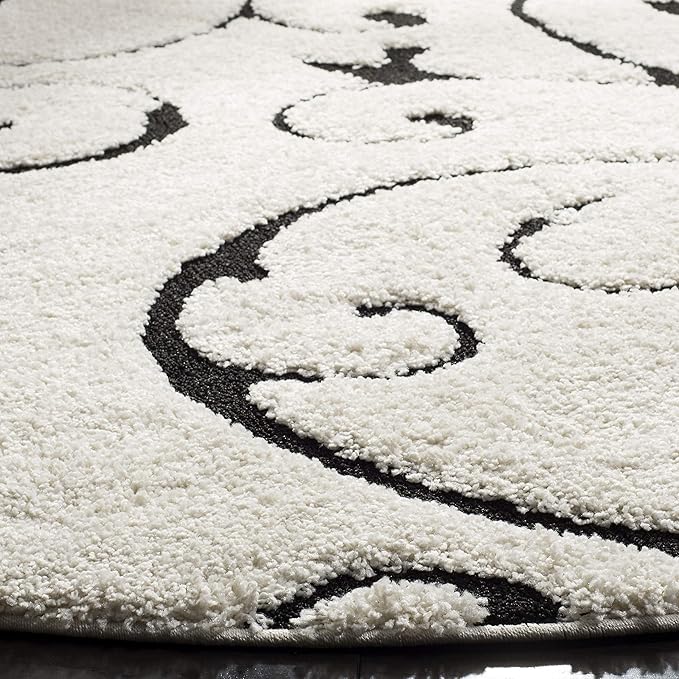 SAFAVIEH Florida Shag Collection 4' Round Ivory / Black SG455 Scrolling Vine Graceful Swirl Textured Non-Shedding Living Room Bedroom Dining Room Entryway Plush 1.2-inch Thick Area Rug