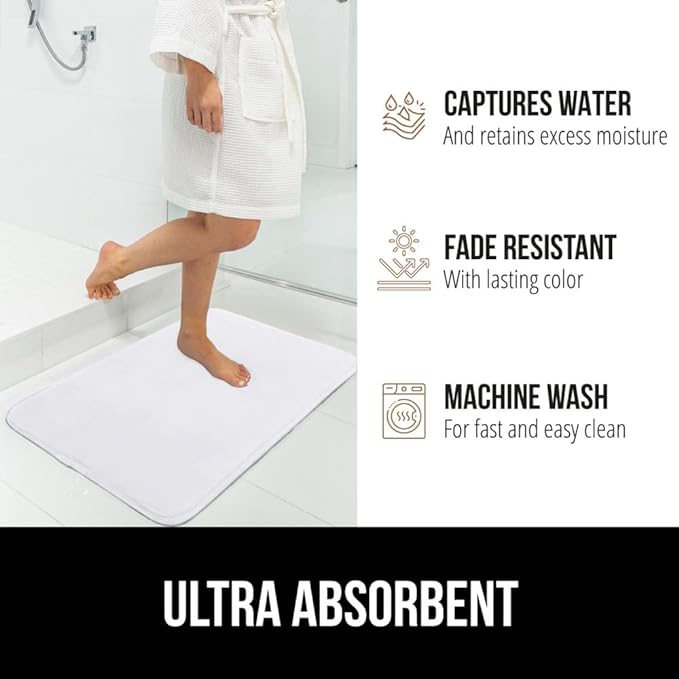 GORILLA GRIP Thick Memory Foam Bath Rugs, Soft Absorbent Velvet Bathroom Mats, Durable Dots on Underside, Machine Washable Bathmat, Carpet Rug Room Decor for Shower Floor, 24x17 Mat, White