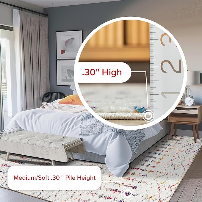 - Stain-Resistant Durability: Keep your rug looking fresh and pristine effortlessly. Its stain-resistant properties make cleaning your area rug a breeze, allowing you to maintain its beauty with ease. Your new area rug will last for years to come!