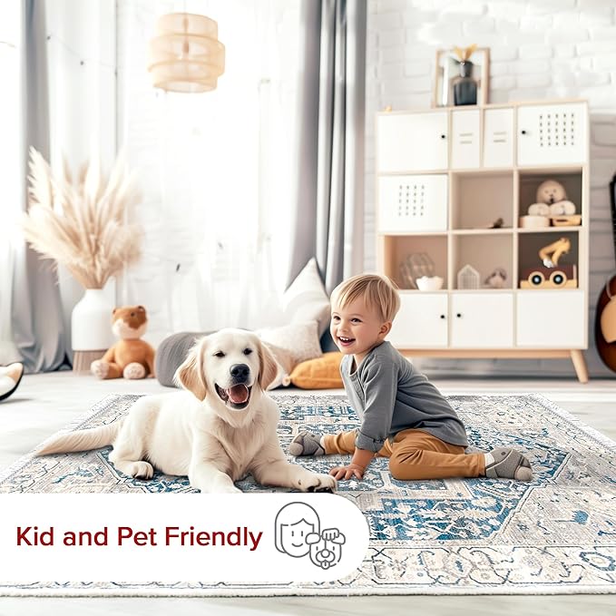 - Kid and Pet-Friendly Rug: Worried about spills or messes? With this synthetic fiber design, this area rug is engineered to withstand the demands of a busy household from kids to pets, giving you peace of mind letting you relax and enjoy your new rug.