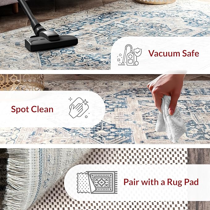 - Rug Care Instructions: This area rug is extremely easy to maintain, simply vacuum your rug regularly and spot clean for lasting beauty. We recommend taking your rug to a professional cleaner as needed for any tough stains as needed.