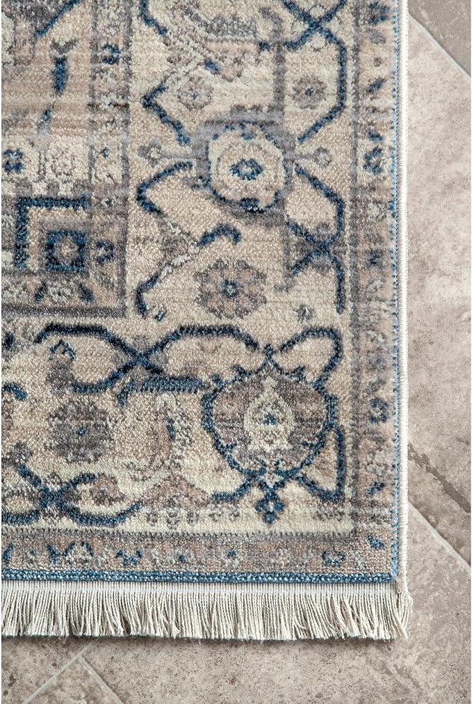 nuLOOM Harriet Vintage Medallion Fringe Area Rug - 5 Round Area Rug Traditional Grey/Multicolor Rugs for Living Room Bedroom Dining Room Kitchen