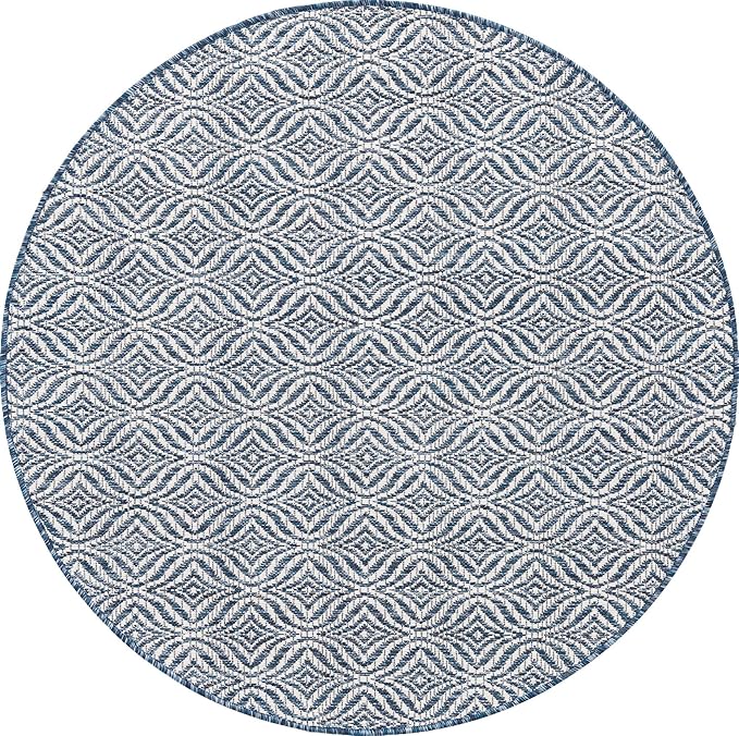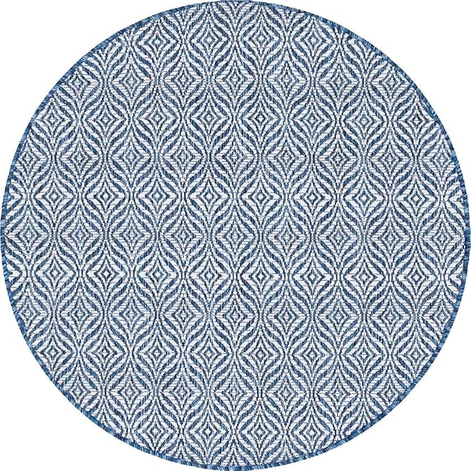 Unique Loom Outdoor Trellis Collection Area Rug - Deco Trellis (4' 1" Round, Blue/ Ivory)