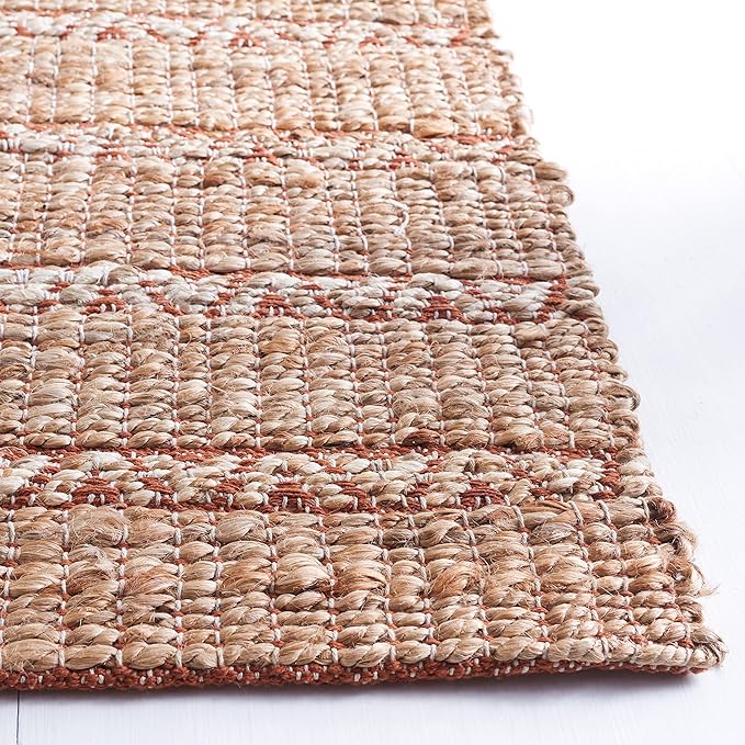 SAFAVIEH Natural Fiber Collection Area Rug - 5' x 8', Rust & Natural, Handmade Flat Weave Stripe Jute & Cotton Jute, Ideal for High Traffic Areas in Living Room, Bedroom (NFB655P)