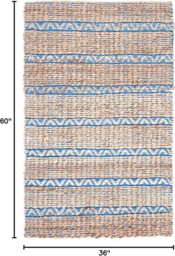 SAFAVIEH Natural Fiber Collection Accent Rug - 3' x 5', Blue & Natural, Handmade Flat Weave Stripe Jute & Cotton Jute, Ideal for High Traffic Areas in Entryway, Living Room, Bedroom (NFB655M)