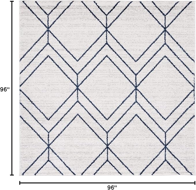 SAFAVIEH Adirondack Collection Area Rug - 8' Square, Light Grey & Navy, Modern Geometric Design, Non-Shedding & Easy Care, Ideal for High Traffic Areas in Living Room, Bedroom (ADR241N)