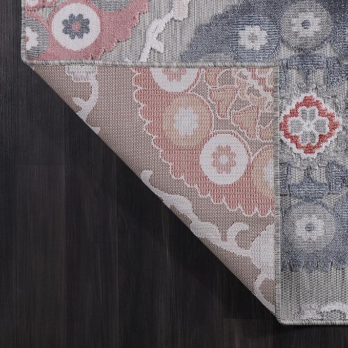 CAMILSON Indoor Outdoor Rug 10x14 Bohemian Medallion Floral Area Rugs for Indoor and Outdoor Patios Easy-Cleaning Non-Shedding Living Room Garden and Kitchen Washable Outside Carpet (10x14-Multicolor)