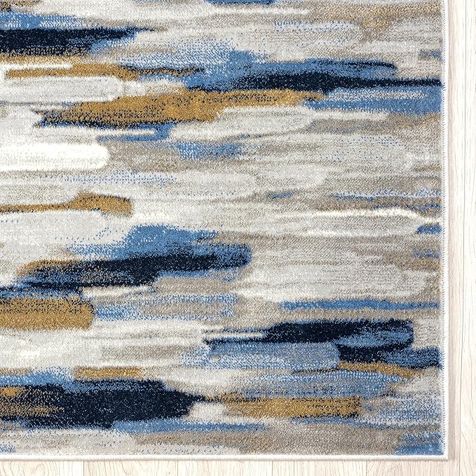 Abani Porto Collection Area Rug -Grey/Blue Abstract Design -4' x 6' - Easy to Clean - Durable for Kids and Pets - Non-Shedding - Medium Pile - Soft Feel - for Living Room, Bedroom & Office