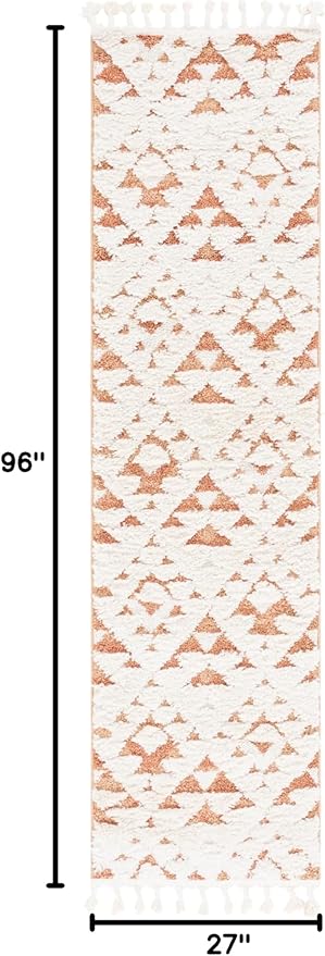 SAFAVIEH Moroccan Tassel Shag Collection Runner Rug - 2'3" x 8', Ivory & Brick Rust, Plush 2-inch Thick, Ideal for High Traffic Areas in Living Room, Bedroom, Dining Room (MTS688P-28)