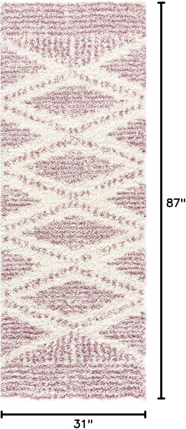 Hauteloom Trunding Moroccan Farmhouse Hallway, Kitchen Shaggy Runner Rug - Bohemian Shag - Plush Pile - Southwestern Boho Soft Carpet - Pink, Cream, Ivory - 2'7" x 7'3"