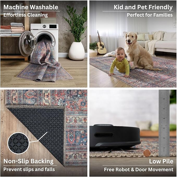 - EASY TO SETUP AND NON-SLIP: This one-piece machine washable rug with non-slip backing attached eliminates any additional setup. Simply unfold and lay flat upon arrival in the desired space. Non-slip backing prevents the rug from moving or sliding without the need for additional rug pad or grippers.