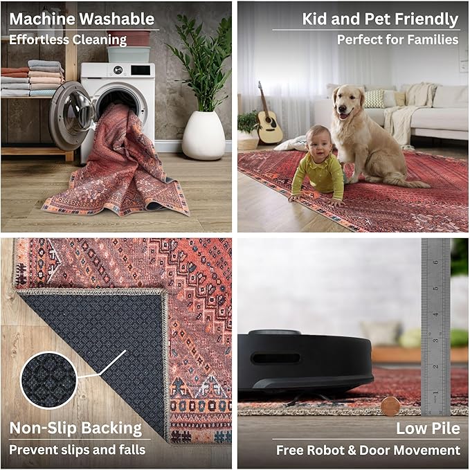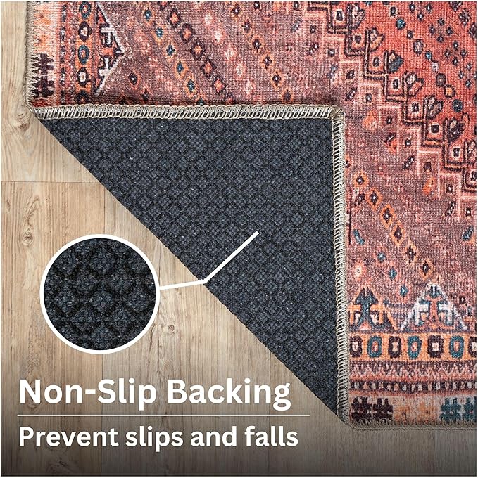 - EASY TO SETUP AND NON-SLIP: This one-piece machine washable rug with non-slip backing attached eliminates any additional setup. Simply unfold and lay flat upon arrival in the desired space. Non-slip backing prevents the rug from moving or sliding without the need for additional rug pad or grippers.