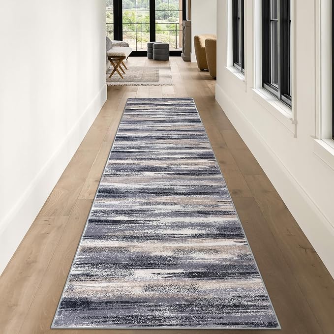 - Rug Specs: Size: 3x10 Feet (36x120 Inches); Thickness: 0.32 inch; Color: Grey Black Navy Blue Cream Tan ; This rug combines navy, gray, beige-tan, and blue-black tones for a modern, elegant look; Ideal for long hallways, large entryways, or alongside long furniture, adding a stylish and refreshing touch