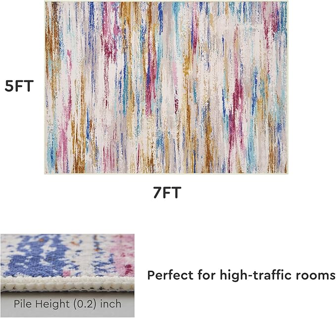 - Machine Washable Rug: The rugs for the bedroom support machine washing; just put the bedroom rug into the washing machine to complete the cleaning easily. After machine washing, the colorful rug can maintain its original color and texture, making it more durable and long-lasting than other washable rugs 5x7.