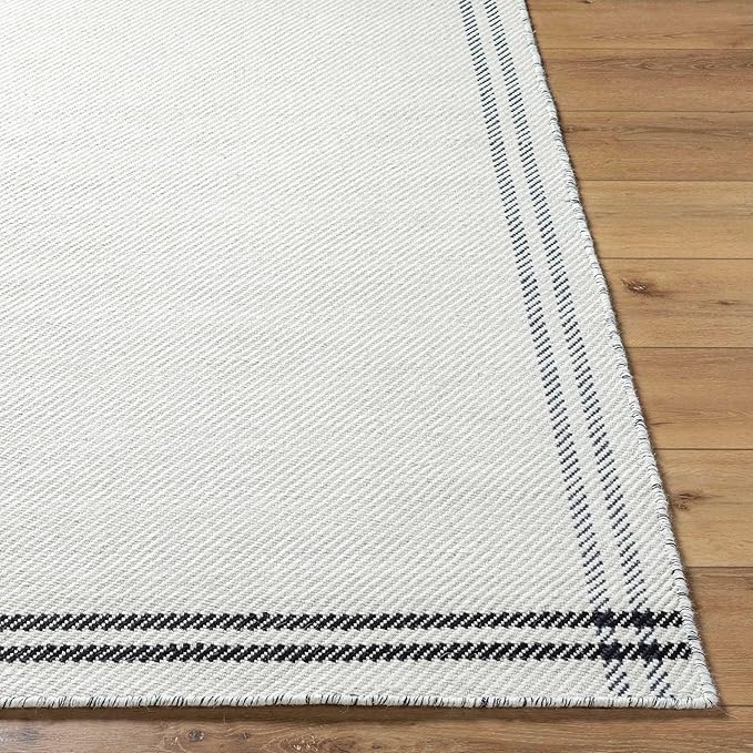 - Material: Face: 100% Wool | Pile Type: No Pile, 0 inches | Construction: Hand Woven | Origin: India | Colors: Light Silver, Black