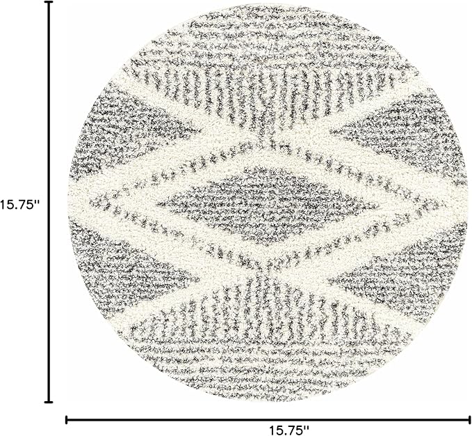 Hauteloom Trunding Living Room, Bedroom Area Rug - Bohemian, Transitional - Plush Pile - Charcoal, Cream - 18" Sample