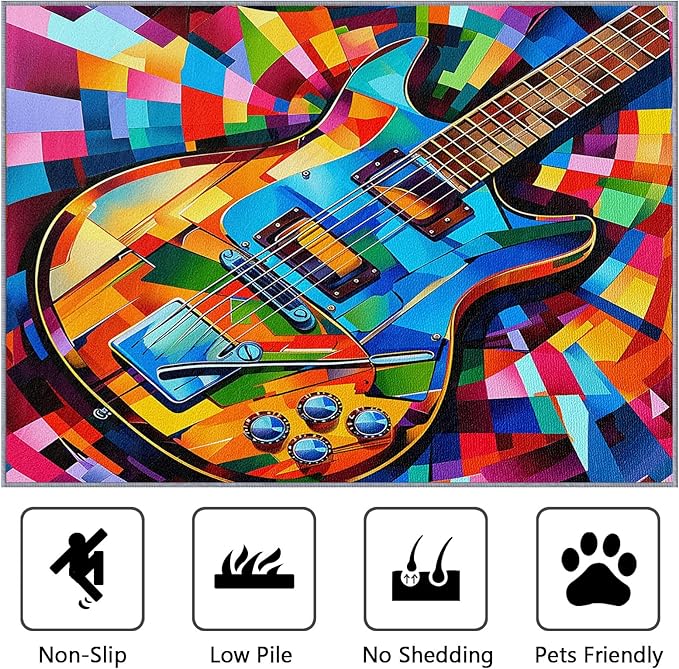 Guitar Rugs for Music Room - Guitar Rug, 8x10 Rug, Abstract Colorful Musical Area Rug, Multicolor Carpet, Washable & Non Slip & Soft Large Rugs, Guitar Home Decor Gifts