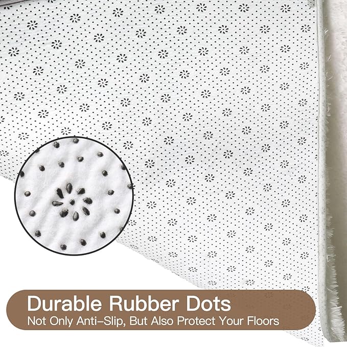 • _ON-SLIP BOTTOM DESIGN- The Living Room Fluffy Rug is covered with thousands of plastic beading dots , they can help to increase the friction between the carpet and the floor,and give the carpet a certain non-slip function. Grips bottom, Non-slip and does not harm the floor. Keep the rug stay in place.
