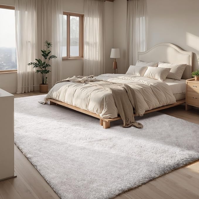 • _UPER SOFT FEELING- The Area Rugs for Bedroom is made of fiber material, super soft feeling and velvet can absorb dust. Middle is high resilience sponge can reduce pressure on you feet and enhance the softness.you can freely lie on it to relax or play games with the family.