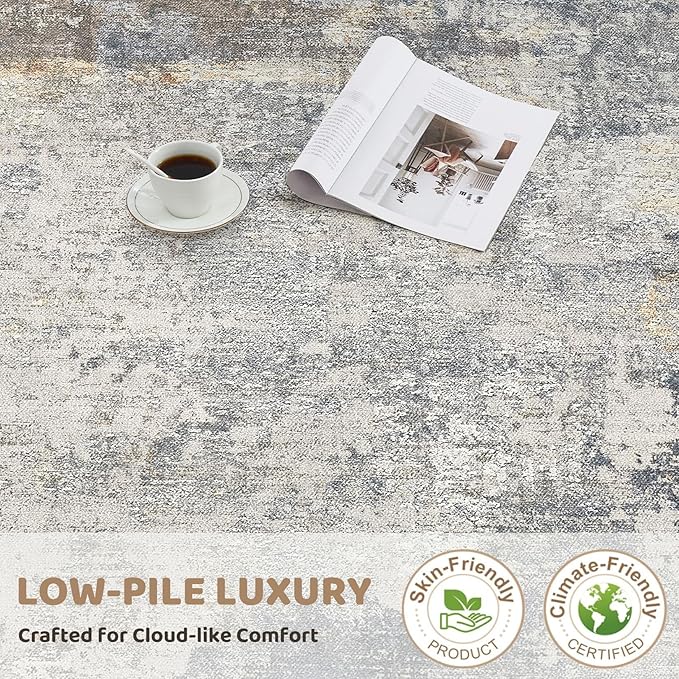 - NEUTRAL ABSTRACT RUG: This rug features a unique neutral abstract design that combines the blue and grey color, adding more warmth and cozy to your home. The carpet is good for living room, bedroom, dining room study room, home office, etc