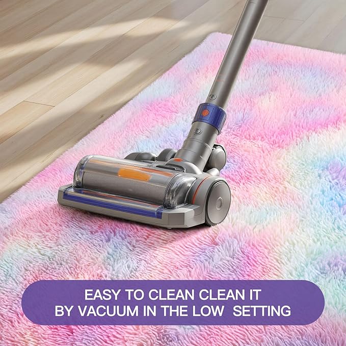 • _ASY CLEANING - Machine Washable Area Rugs, simply vacuum with a hand-held vacuum in daily. If you want to do deeper clean, you can add some mild detergent and gently wash the Shaggy Velvet Area Rugs by hands. Then choose a site that's well ventilated, lay rug out or hang to dry naturally. Please do not expose it in the sun.