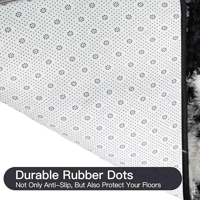 - _ON-SLIP BOTTOM DESIGN- The Living Room Fluffy Rug is covered with thousands of plastic beading dots , they can help to increase the friction between the carpet and the floor,and give the carpet a certain non-slip function. Grips bottom, Non-slip and does not harm the floor. Keep the rug stay in place.