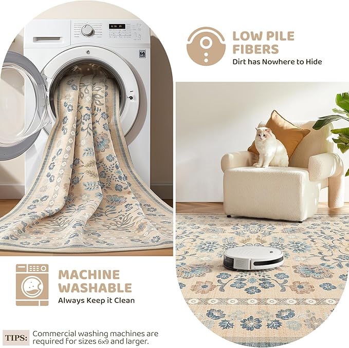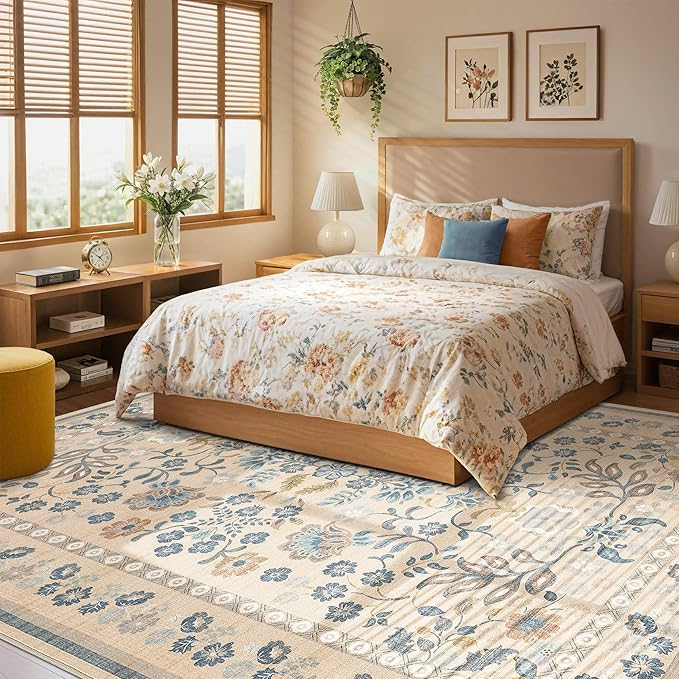 5x7 Area Rug Living Room Rugs Thickened - Washable Boho Vintage Floral Large Soft Non Slip Thin Rug Low Pile Carpet for Bedroom Dining Room Kids Playroom Office Decor Indoor- Multi Color