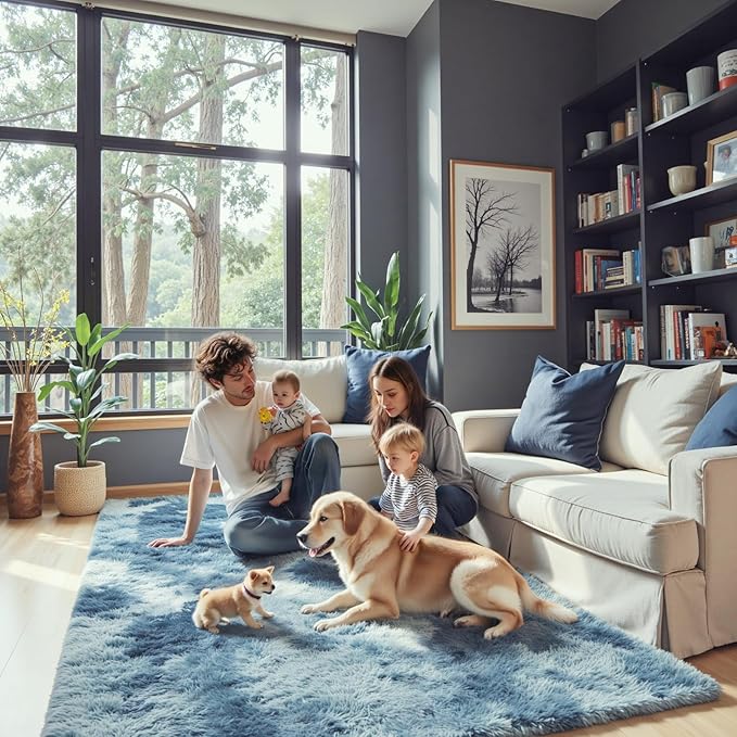 - Super Fluffy Living Room Rug: The 3x5 shag living room rug is made of high-density microfiber, with 1.7 inches pile, which will not shed after long-term use. Stepping onto the plush rug, indulge in pure comfort—a subtle sensation that brings delight with every step. Embrace the soft joy cherished by your entire family, including children and pets