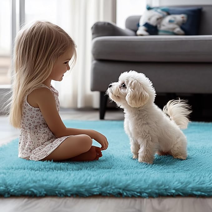 - Premium Comfort Durability: Our teal blue 8x10 area rug offers 1.8-inch thick plush pile for ultimate softness, providing thermal and acoustic insulation. Featuring a non-slip latex backing, this shag rug ensures safety and stability, while being fade-resistant, odor-free, and shedding-free for long-lasting use. Perfect as bedroom living room rugs.