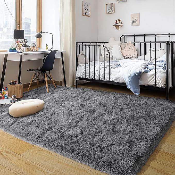 Dark Gray Fluffy Rug Plush Carpet for Bedroom Dorm, Non-Slip High Pile Rug, Shag Rug for Playroom Nursery Home Office Decor 9X12 Ft