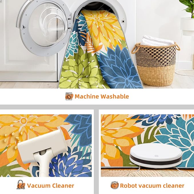- Floral Pattern Design: Brighten up your outdoor space with our stunning floral pattern washable rug, perfect for patios, decks, or gardens, adding a touch of elegance and charm to any setting.