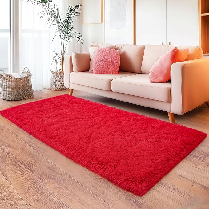 Red Runner Rug for Hallway, Bedroom Bedside Plush Rugs, Non Slip Fluffy Shaggy Carpet for Kids Home Decor, Dorm Nursery 2x6 Ft