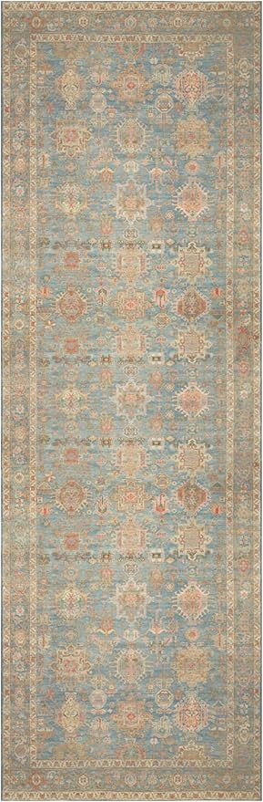 - Washable rug with a vintage-inspired pattern that adds heirloom appeal to modern spaces
