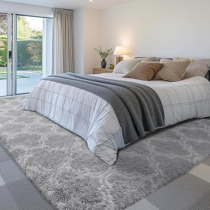 - _UPER SOFT FEELING- The Area Rugs for Bedroom is made of fiber material, super soft feeling and velvet can absorb dust. Middle is high resilience sponge can reduce pressure on you feet and enhance the softness.you can freely lie on it to relax or play games with the family.